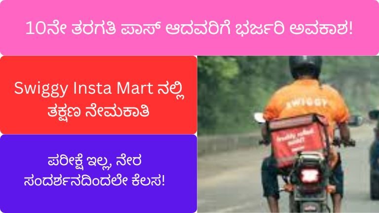 Swiggy Recruitment 2026 10ನೇ ತರಗತಿ ಪಾಸ್ ಆದವರಿಗೆ ಭರ್ಜರಿ ಅವಕಾಶ! Swiggy nsta Mart ನಲ್ಲಿ ತಕ್ಷಣ ನೇಮಕಾತಿ – ಪರೀಕ್ಷೆ ಇಲ್ಲ, ನೇರ ಸಂದರ್ಶನದಿಂದಲೇ ಕೆಲಸ!