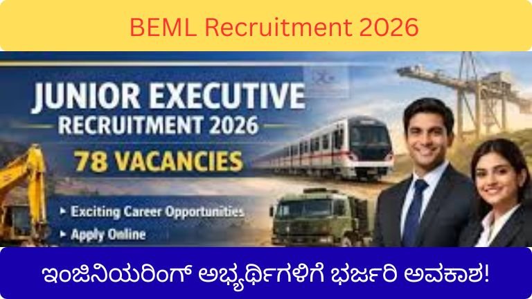 BEML Recruitment 2026: 78 Junior Executive ಹುದ್ದೆಗಳು – ಇಂಜಿನಿಯರಿಂಗ್ ಅಭ್ಯರ್ಥಿಗಳಿಗೆ ಭರ್ಜರಿ ಸರ್ಕಾರಿ ಉದ್ಯೋಗ ಅವಕಾಶ!
