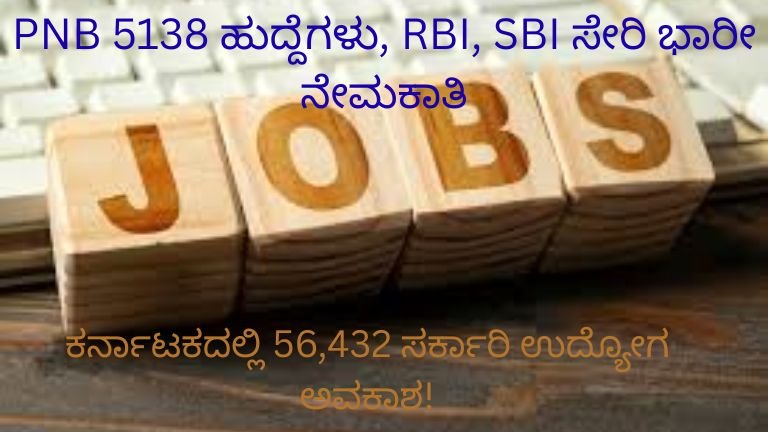 Job Alert 2026: PNB 5138 ಹುದ್ದೆಗಳು, RBI, SBI ಸೇರಿ ಭಾರೀ ನೇಮಕಾತಿ – ಕರ್ನಾಟಕದಲ್ಲಿ 56,432 ಸರ್ಕಾರಿ ಉದ್ಯೋಗ ಅವಕಾಶ!